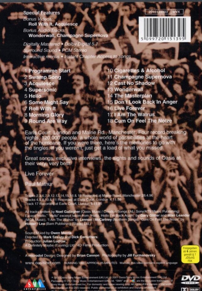 Diese DVD kann ich jedem Oasis Fan empfehlen. Meine Höhenpunkte sind: Acquiesce, Morning Glory, das wunderschöne Cast no shadow und c'mon feel the noize. Natürlich ist der Rest genauso gut;) unbedingt kaufen!