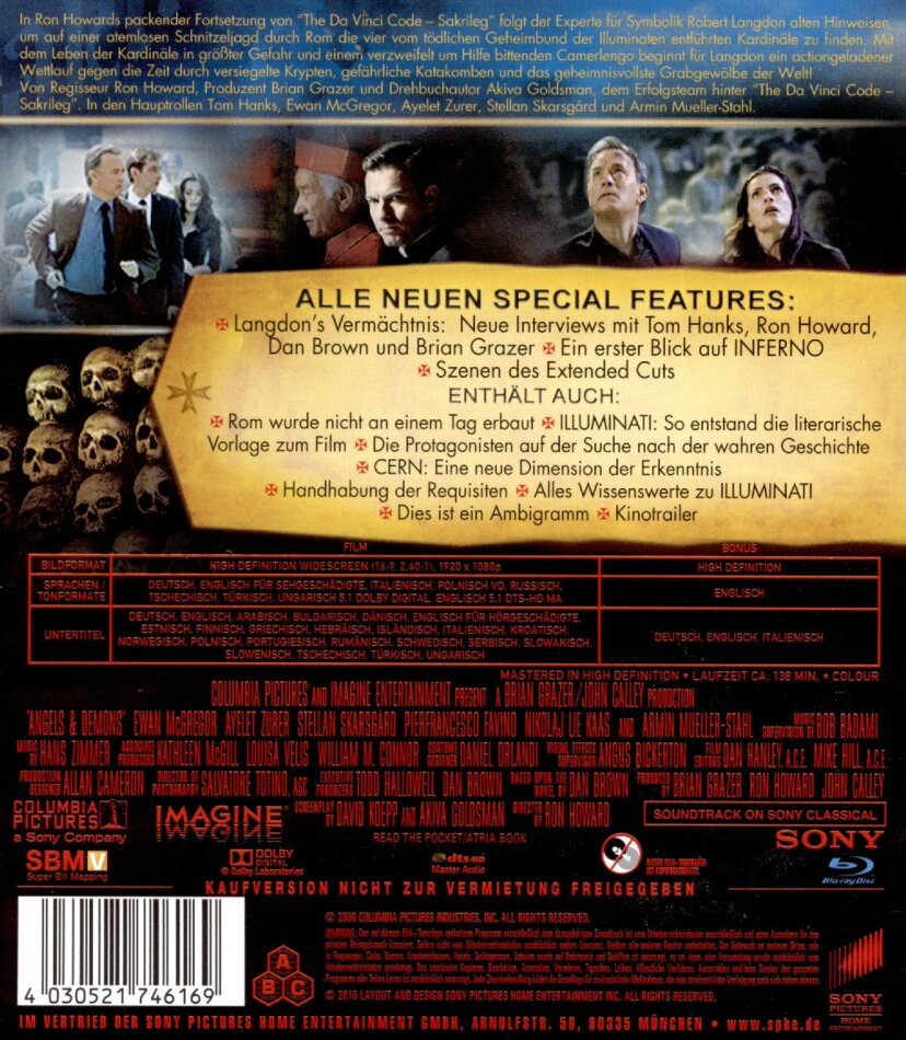 | Schauspieler | Tom Hanks, Ewan McGregor, Ayelet July Zurer, Stellan Skarsgård, Armin Müller-Stahl, Nikolaj Lie Kaas, Pierfrancesco Favino |