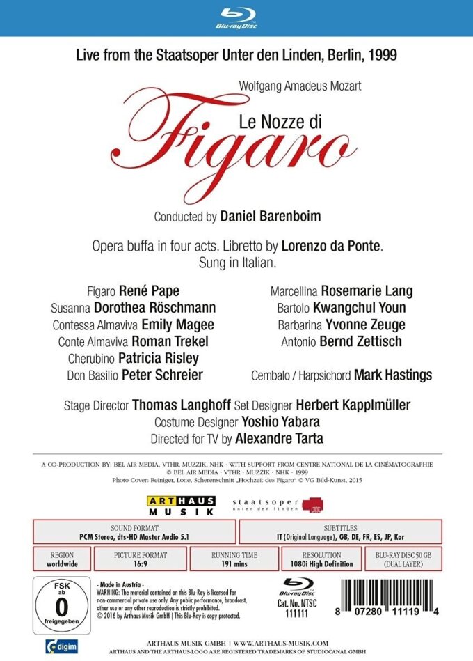 | Artists | Staatskapelle Berlin, Daniel Barenboim, René Pape, Dorothea Röschmann, Roman Trekel, Emily Magee, Patricia Risley, Rosemary Lang, Kwangchui Youn, Peter Schreier |