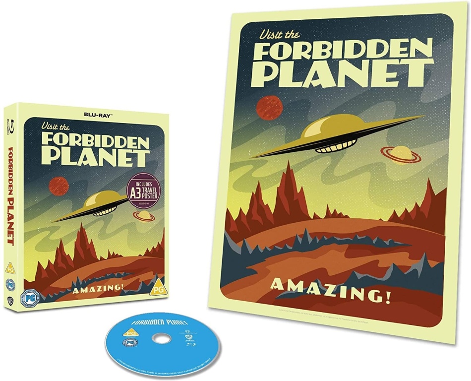 Forbidden Planet is the granddaddy of tomorrow, a pioneering work whose ideas and style would be reverse-engineered into many cinematic space voyages to come. Leslie Nielsen plays the commander who brings his space-cruiser crew to Planet Altair-4, home to Dr. Morbius (Walter Pidgeon), his daughter (Anne Francis), a dutiful robot named Robby… and a mysterious terror. Featuring sets of extraordinary scale and the first all electronic musical soundscape in film history, Forbidden Planet is in a movie orbit all its own